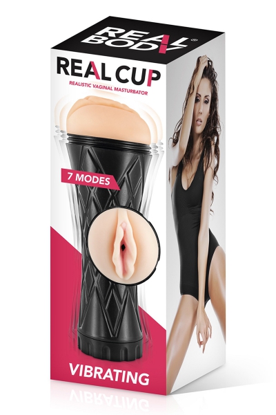 Masturbateur réaliste pour homme de la marque Real Body, avec un orifice vibrant ultra doux reproduisant de manière parfaite un vagin, pour les amateurs de pénétration vaginale et de stimulation intense.