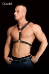 Thanos - Chest centerpiece, de la marque Ouch! est un superbe harnais pour homme en cuir et métal qui mettra en valeur votre torse et votre dos.