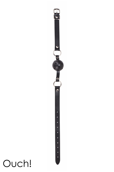 Le Bâillon BDSM Ball Gag, proposé par la marque Ouch!, est un bâillon boule de qualité avec une balle dure en ABS traversée par des petits trous facilitant la respiration de votre soumis (e).