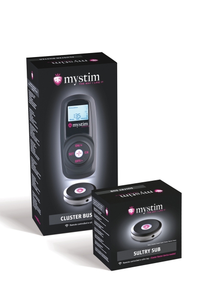 Le Mystim Cluster Buster est livré dans un set contenant la télécommande et un récepteur Sultry Sub. Ce récepteur sans fil est compatible avec tous les accessoires Mystim afin qu'ils puissent tous être contrôlés à distance à partir de lui.