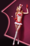 Avec sa petite jupe à bretelles laissant apparaitre le string sans le moindre mouvement et son soutien gorge en guise de haut, nul doute qu'en portant ce déguisement d'infirmière rouge et blanc, très sexy et très dénudé, les demandes de consultations seront nombreuses.