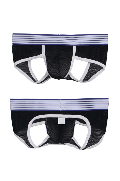 Ce jock-strap très doux est conçu en très fine résille légèrement transparente accompagnée d'une large bande élastique très confortable. Avec une coupe en forme de slip devant, la partie arrière est bien un jock-strap noir avec une ouverture sur les fesses bien arrondie.