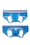 Ce jock-strap très doux est conçu en très fine résille légèrement transparente accompagnée d'une large bande élastique très confortable. Avec une coupe en forme de slip devant, la partie arrière est bien un jock-strap bleu avec une ouverture sur les fesses bien arrondie.