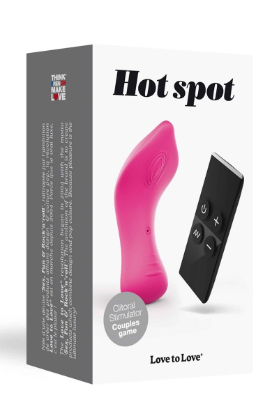 La marque française Love To Love présente Hot Spot, un stimulateur de clitoris 100% silicone, très puissant, silencieux et fonctionnant à l'aide d'une télécommande sans fil d'une portée de 10 mètres, pour le plus grand plaisir des couples amateurs de sensations en extérieur.