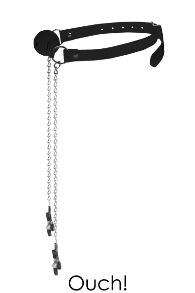 Baillon boule avec pinces à seins - Ouch!