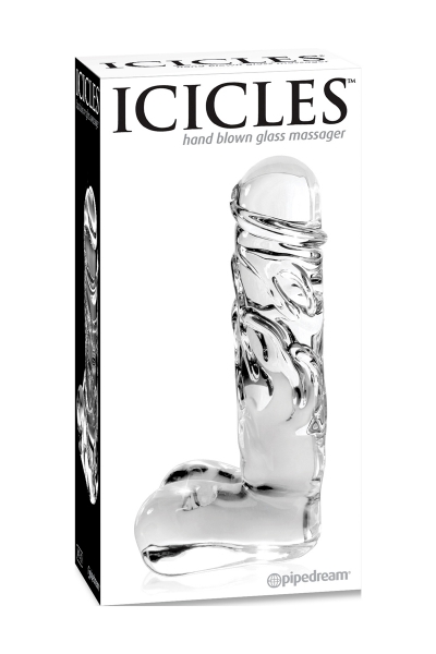 "Icicles n° 40" est un gode tout en transparence avec une forme réaliste et des testicules à sa base, un corps veiné et un gland bien dessiné dont les reliefs intensifient vos sensations. Il est idéal pour la pratique du plaisir vaginal ou du plaisir anal.