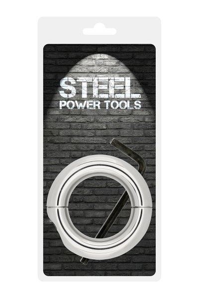Le ball stretcher Steel Power Tools est un accessoire BDSM de grande qualité, pour hommes, qui produit une contrainte sur les bourses en les étirant et se verrouille à l'aide d'une clé allen.