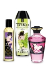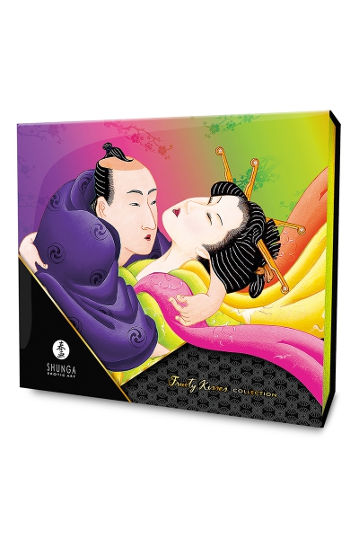 Shunga à pensé aux fans de plaisirs fruités pour vous proposer ce coffret cadeau idéal composé d'une huile de massage classique parfum Fruits Exotiques, une huile de massage comestible et chauffante à la framboise et un lubrifiant intime parfum melon-mangue.