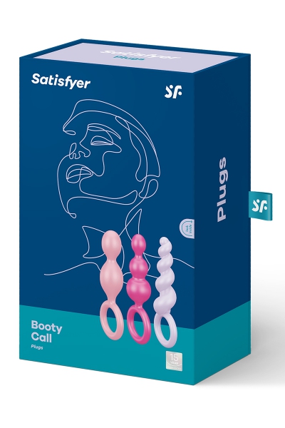 Le coffret "Booty Call"de la marque Satisfyer est un ensemble de 3 plugs en silicone, aux formes excitantes et sensuelles, permettant assouvir vos envies de sexe anal.