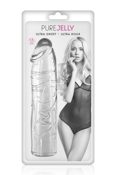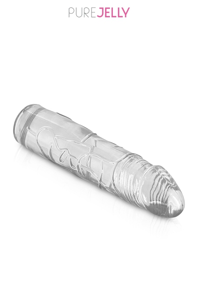La marque Pure Jelly présente ce dong cristal translucide de 17,2 x 3,8 cm, fabriqué en "jelly" (TPE) ultra doux.