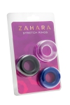 Ensemble de 3 anneaux de pénis multicolore en TPR, extensibles de 3 à 3,5 cm, pour booster vos relations sexuelles, de la marque Zahara.
