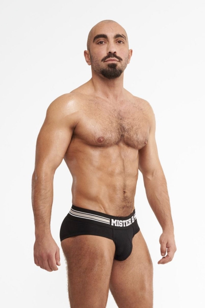 Slip Amsterdam noir, collection Urban, par Mister B, un brief au top pour le confort avec un système "Push up" sur le devant pour mettre en valeur vos attributs masculins.