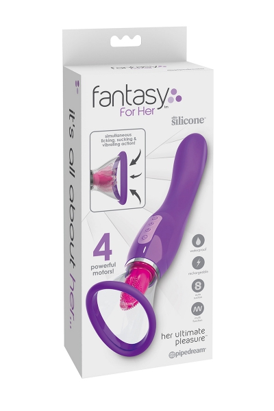 Le stimulateur "Her Ultimate Pleasure" fait partie de la collection Fantasy For Her de Pipedream. C'est un sextoy 100% destiné aux femmes qui offre à la fois une pompe à vagin aspirante, une langue vibrante et un vibromasseur point G.