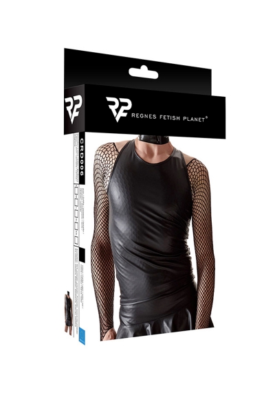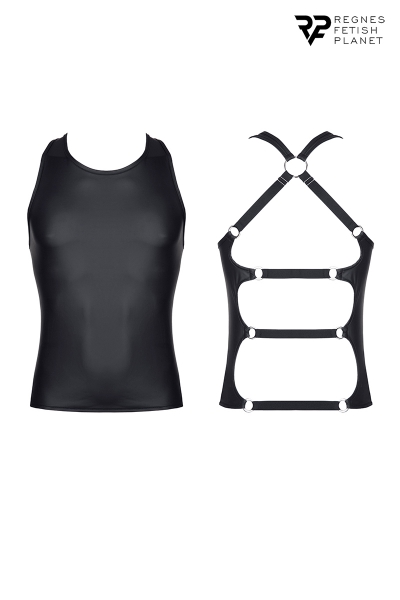 Débardeur noir en wetlook extensible, pour s’adapter parfaitement à la morphologie de chacun. La marque Européenne Regnes Fetish Planet a créé une collection dédiée aux hommes voulant explorer de nouvelles visions d’eux-mêmes, et a tout naturellement pensé ce modèle classique devant et totalement original dans le dos.