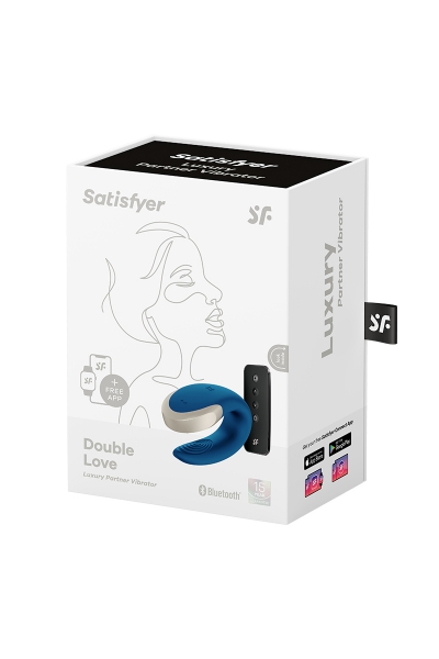 Le vibromasseur Double Love bleu, de la marque Satisfyer, est un sextoy de luxe en silicone et métal pour les couples et les femmes. Le sextoy peut être commandé à partir de sa télécommande sans fil incluse ou d'un smartphone et de son application Satisfyer gratuite. Il peut vous procurer du plaisir lorsque vous êtes ensemble ou tout en étant connecté à distance.