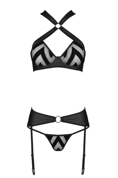 Ensemble 3 pièces : soutien-gorge, porte-jarretelles, string (bas non fournis)