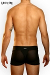 Association d'un string opaque auquel ont été ajoutées des jambes de résille, il est particulièrement élégant et sexy. La résille laisse transparaitre la rondeur des fesses et les muscles des cuisses, et la coquille 100% opaque aux découpes anatomiques offre un bombé généreux et aguicheur.